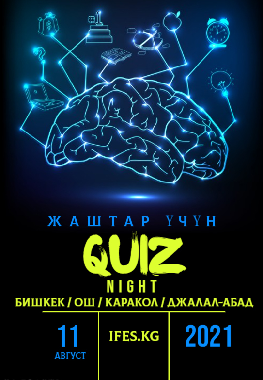 Кыргыз Республикасындагы Шайлоо системаларынын эл аралык фондунун Өкүлчүлүгү (IFES) АКШнын Эл аралык Өнүктүрүү Агенттигинин (USAID) колдоосу менен 18 жаштан 28 жашка чейинки жаштарды Эл аралык жаштар күнүнө карата Electoral Rights Fest жумалыгынын алкагында Quiz Night интеллектуалдык оюнуна чакырат.